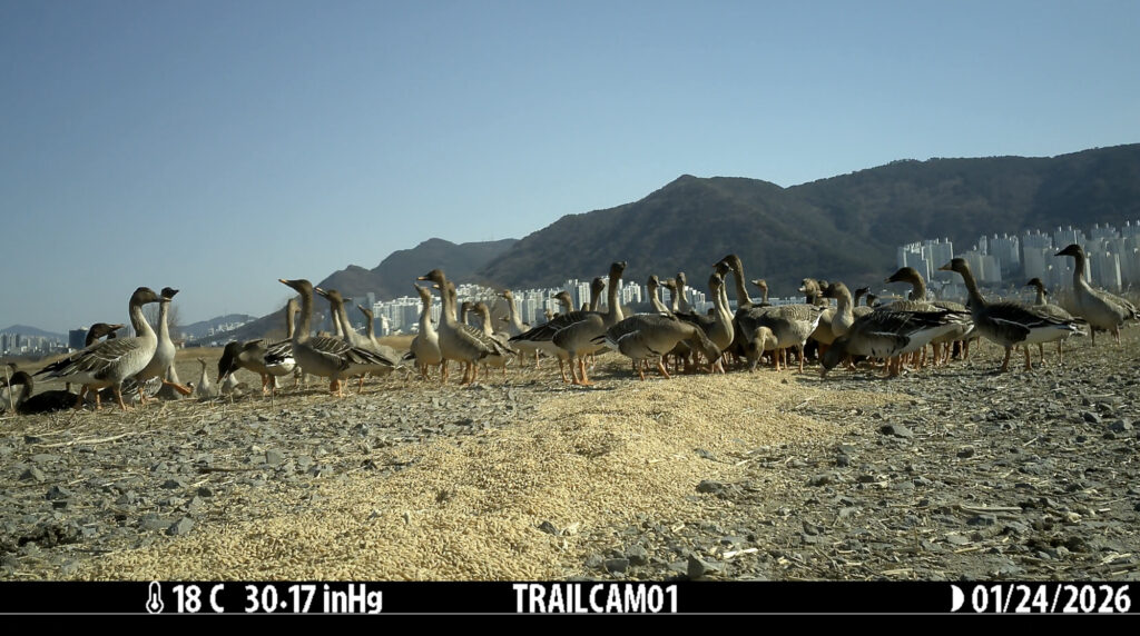 2. In Busan, starting a Society for Ecological Restoration-Microsoft supported collaborative pilot restoration project being developed through our MOU with the Busan Nakdong River Project Management Office. This active collaboration includes experts at the Nakdong Estuary Eco-centre; the company Land Aura; vegetation restoration specialists in a team led by Professor Byun Chaeho; 새덕후 Korean Birder; and various Birds Koreans, including Dr Kim Su-Kyung and Professor Amael Borzee in addition to Dr Nial Moores and National Coordinator Park Meena. This pilot project aims to help restore habitat of Eastern Taiga Bean Geese along the Nakdong River while trying to reduce the bird strike risk to aircraft flying in and out of the airport in Gimhae. The restoration work itself will start in 2026 with a field used for artificial feeding of geese in Maekdo Ecopark.