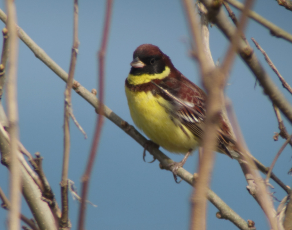 Yellow-breasted Bunting Emberiza aureola. At least 15 on the 10th (most males were apparently of the nominate subspecies) and three on the 11th.