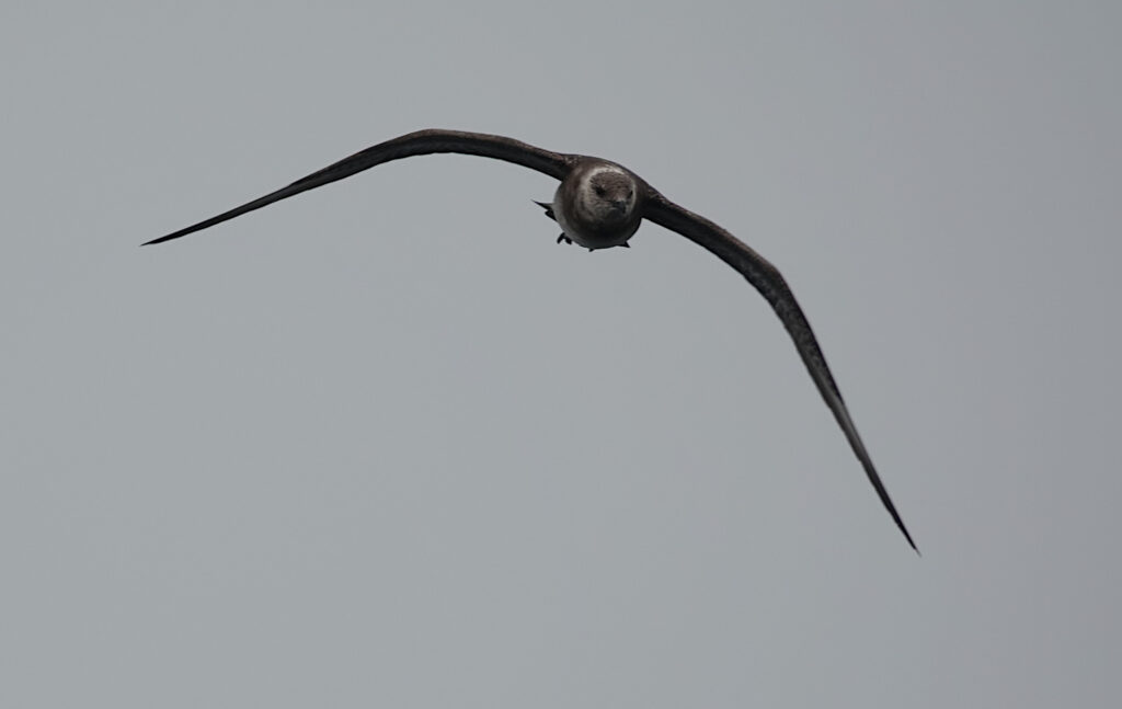 Although the second and third petrel were easy to identify with confidence as Swinhoe’s Storm Petrel, based on their small size, compact look and active flight action (sometimes bat-like, sometimes pratincole like), the first individual in the field gave the impression of being rather large and obviously long-tailed – with angled wings swept back like a falcon, and the flight quite deliberate, powerful and steady (indeed the silhouette and flight action initially strongly suggested ID as a Eurasian Hobby Falco subbuteo 새호리기!).