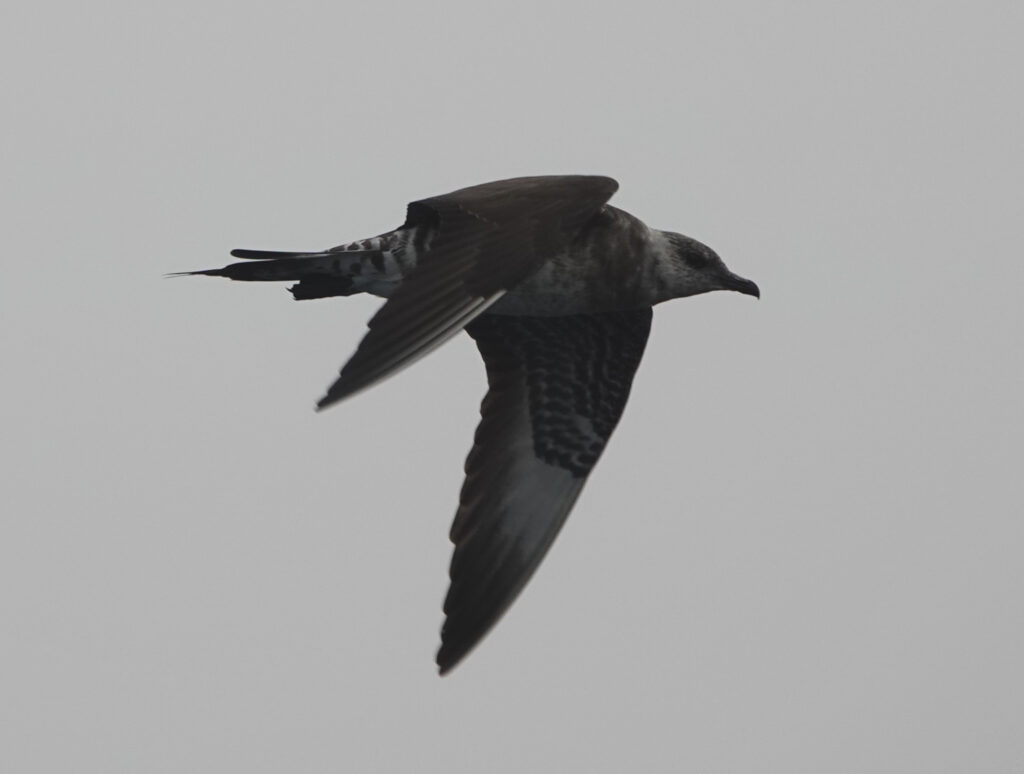 This small feeding frenzy in turn attracted what we identified as one (or much less likely two) immature Long-tailed Jaeger, and one (or perhaps two) immature Parasitic Jaeger.